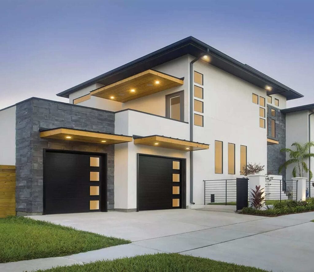 Modern Steel™ garage doors are a perfect match for contemporary and mid-century modern homes. You can choose doors with or without windows, and with or without grooves in the panels. They come in multiple paint, Ultra-Grain®, and Lustra™ finishes, allowing you to create the ideal look for your home.