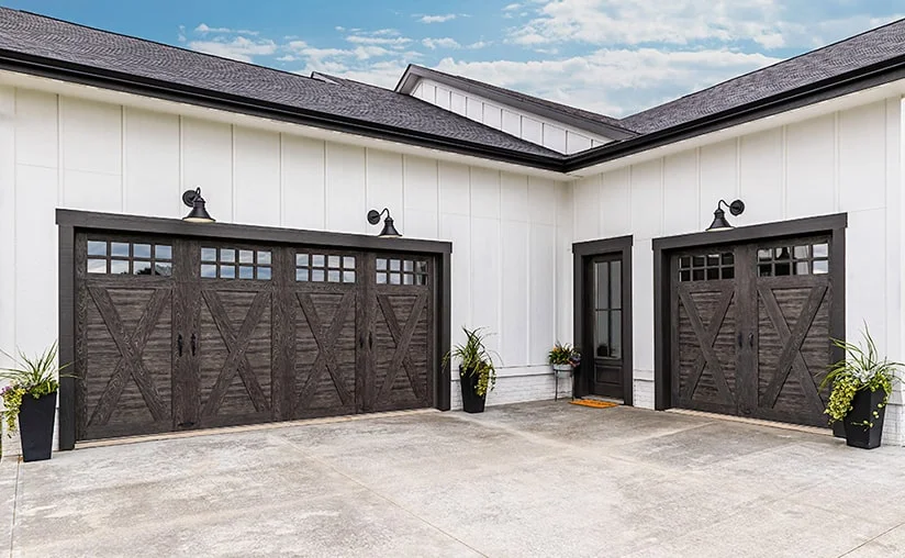Raised panel garage doors are what many people picture when they think of a classic garage door – they have long and short panels, windows, and come in lots of colors. They help highlight your home’s design with depth and symmetrical patterns.