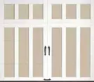 Choose from fifteen carriage house garage door designs, featuring optional windows and decorative hardware. Available in four standard paint colors, with the option to paint steel and overlay colors differently. Explore ColorBlast custom paint colors.**Please note: Due to LRV requirements, painting Coachman doors with dark colors will void the warranty. For dark color options, consider Canyon Ridge® Elements.